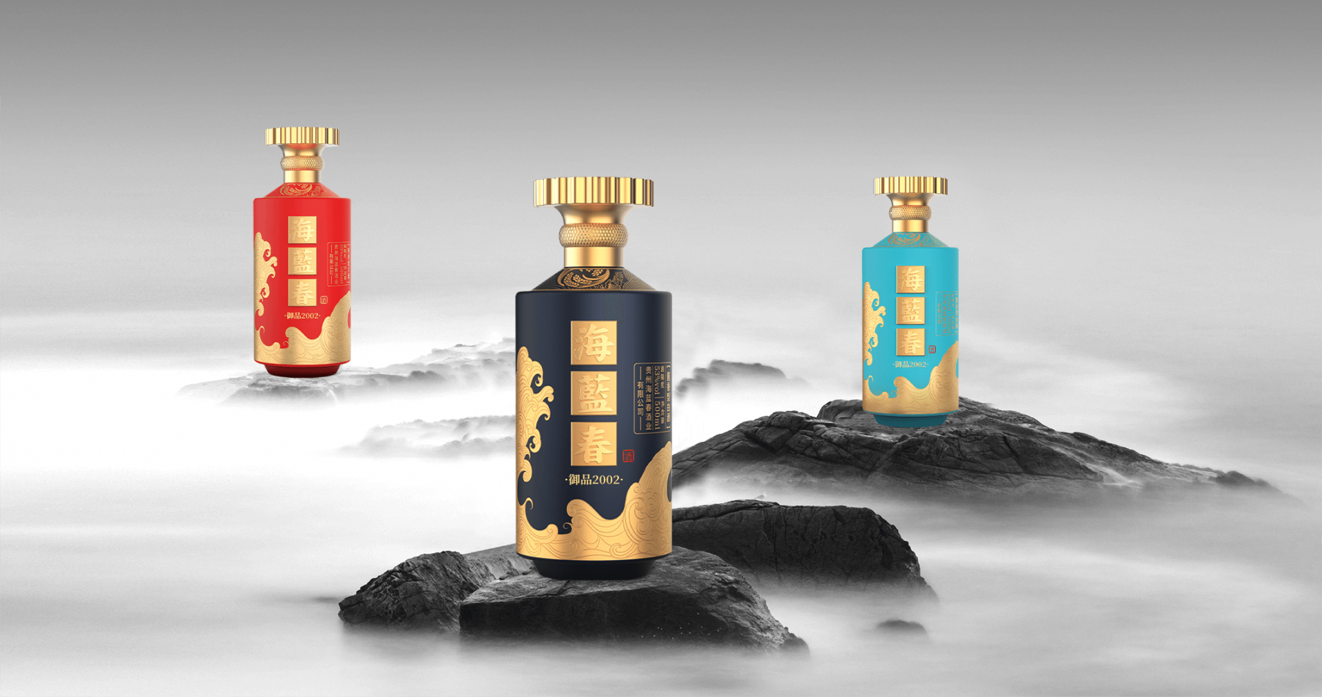 器型创作灵感源于秦皇岛海滨文化,渤海之滨的碧海蓝天,奔腾的海浪,人与自然和谐共处,遵循时令,遵循古法,以此寓意着海蓝春成就的每一杯经典酱香,都源自运时而生、以人而制的天人合一。三色礼盒装,应对不同场合用酒需求场合。